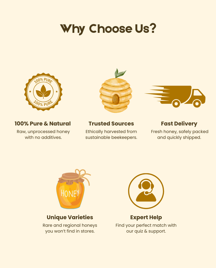 Our honey is ethically sourced from trusted beekeepers who follow sustainable and bee-friendly practices.